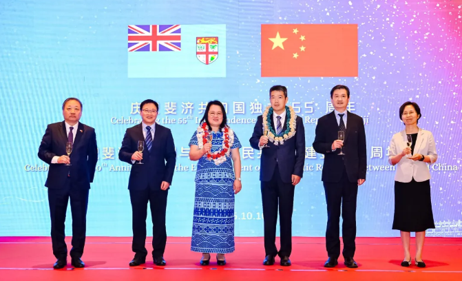 2025年10月10日,斐济共和国国庆55周年暨中斐建交50周年庆典招待会在沪隆重举办。应斐济共和国驻沪总领事陈玉茹博士盛情邀请,朱迪会长出席本次盛典。