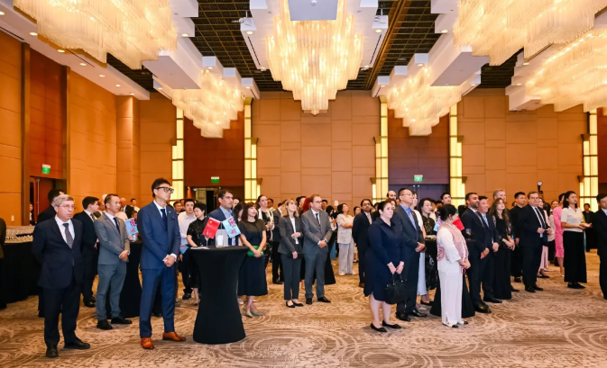 活动得到中外各界高度重视,嘉宾阵容兼具代表性与权威性:中方层面,上海市副市长张亚宏,上海市人大常委会办公厅二级巡视员罗杰,上海市政协办公厅副主任王建华,上海市人民政府外事办公室副主任徐凯,上海虹桥国际中央商务区管委会党组书记、常务副主任孔福安,上海市对外友协副会长、一级巡视员傅继红等领导莅临;此外,江苏省、浙江省、安徽省外办及贸促会负责人,各行业商会代表亦受邀参会。国际方面,英国、波兰、葡萄牙、新西兰、马来西亚、俄罗斯、奥地利、泰国等近40 个国家的驻沪领事机构的总领事、副总领事等高级别官员出席,以实际行动彰显对中斐关系及多边交流的重视,共同为庆典赋予深厚的外交意义。