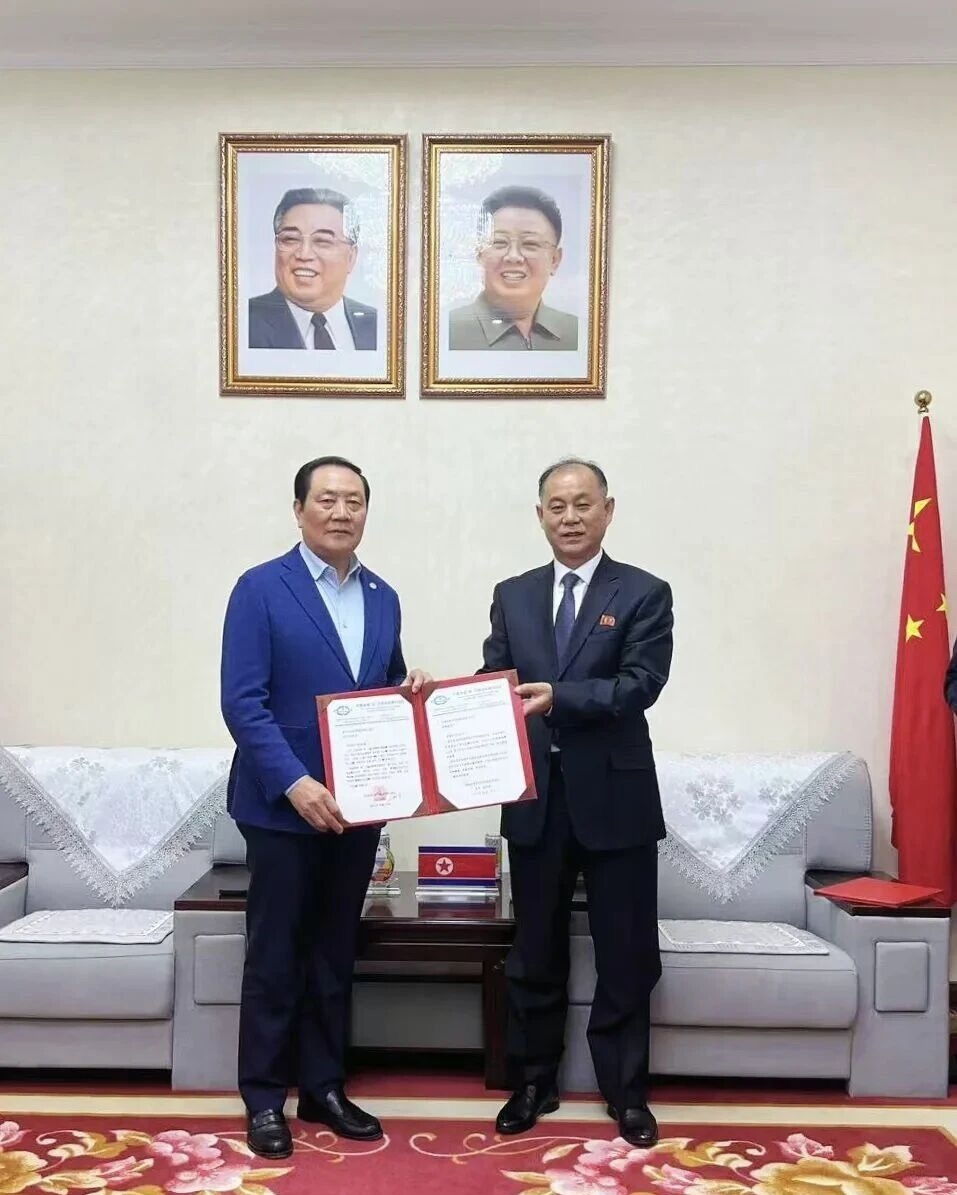 应朝鲜人民民主主义共和国驻丹东领事馆总领事朴哲俊的邀请亚经协权顺基会长率领企业代表团于2025年10月26日访问丹东。陪同访问的有亚经协常务副会长、江苏黄埔再生资源利用有限公司董事长陈光标,海南三牛集团董事长卢红波、亚经协副会长朴龙日、陈武、谢汉星,亚经协生物经济工作委员会常务副会长兼秘书长傅子昂、委员会副会长宋耕福、李英俊、李院生,北京瀚理律师事务所合伙人欧阳瑶蓝、辽宁省对外投资合作促进会名誉会长王晓江、北京大华长盛投资有限公司总经理张国志、辽宁洋茗实业有限公司总经理董礼智、青岛凯曼进出口有限公司总经理权伍德等。