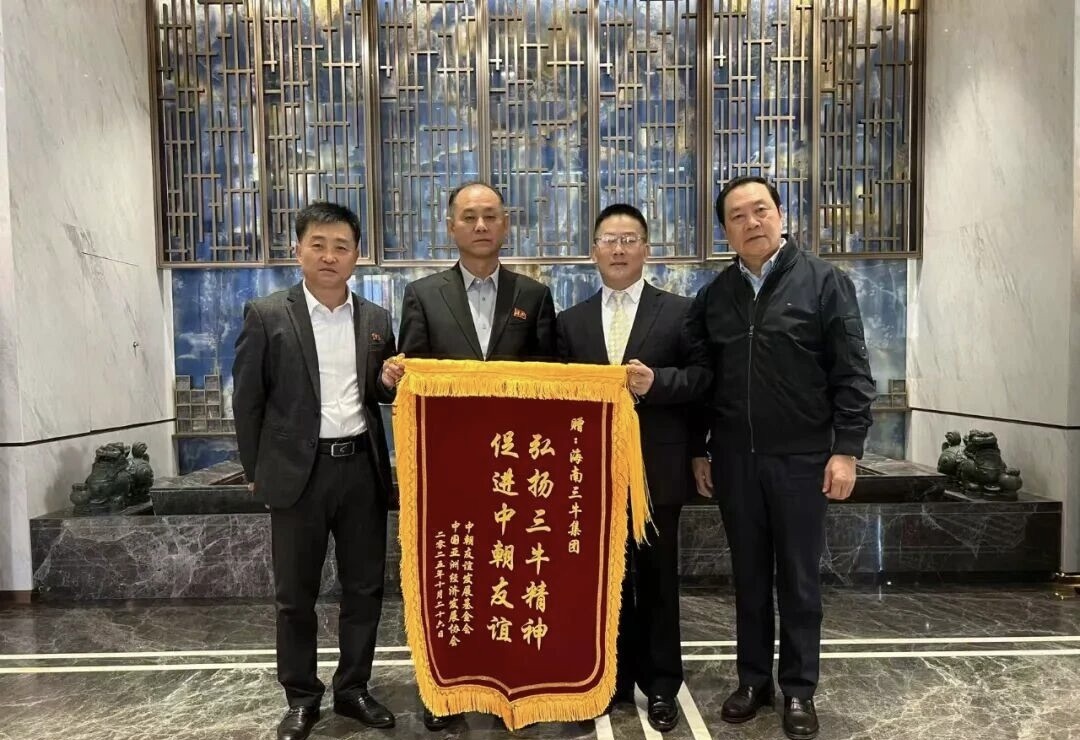 会后朴哲俊总领事代表朝鲜外交部分别给亚经协权顺基会长、陈光标董事长、陈武董事长、傅子昂秘书长颁发感谢证书,权顺基会长代表亚经协给海南三牛集团董事长卢红波颁发锦旗。会后与会人员合影留念。晚上,朴哲俊总领事设宴款待亚经协代表团一行。
