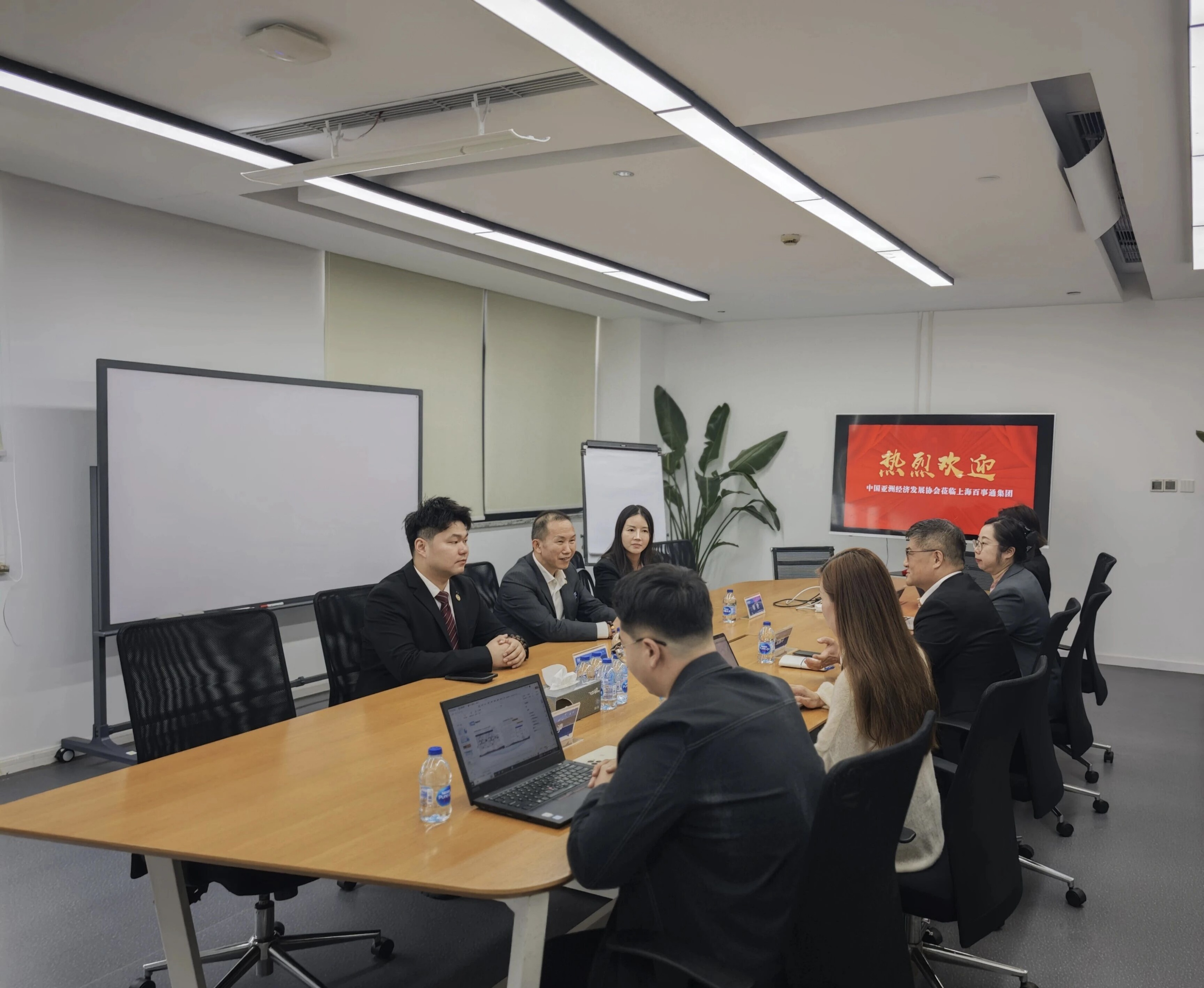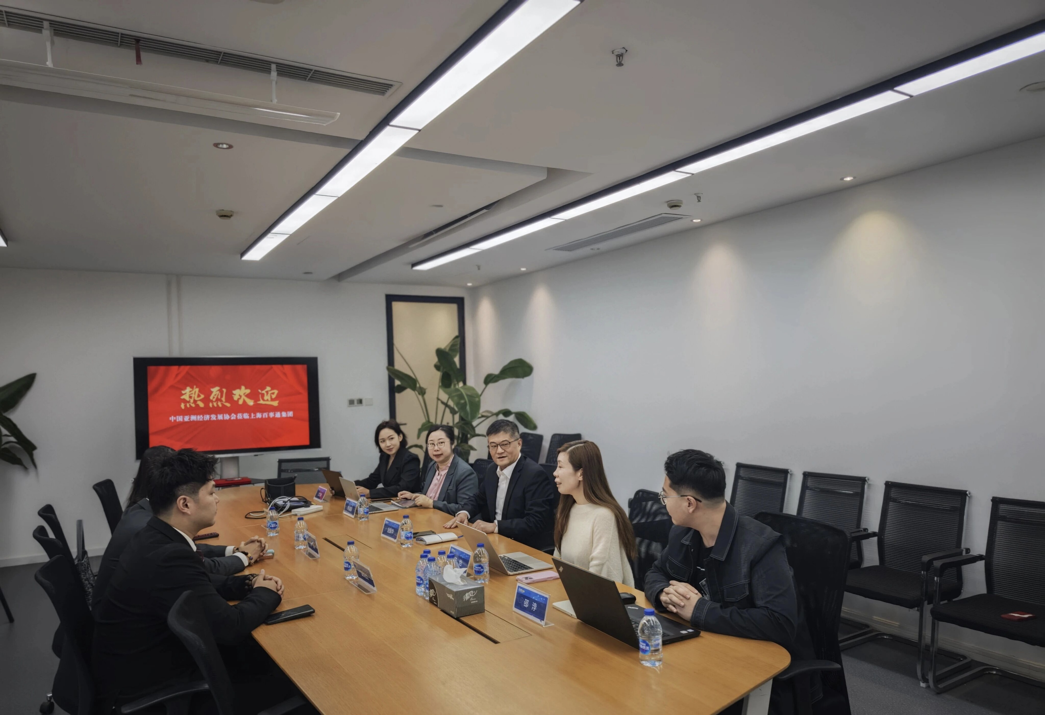 亚经协对外投资工作委员会团队与上海百事通团队会谈现场