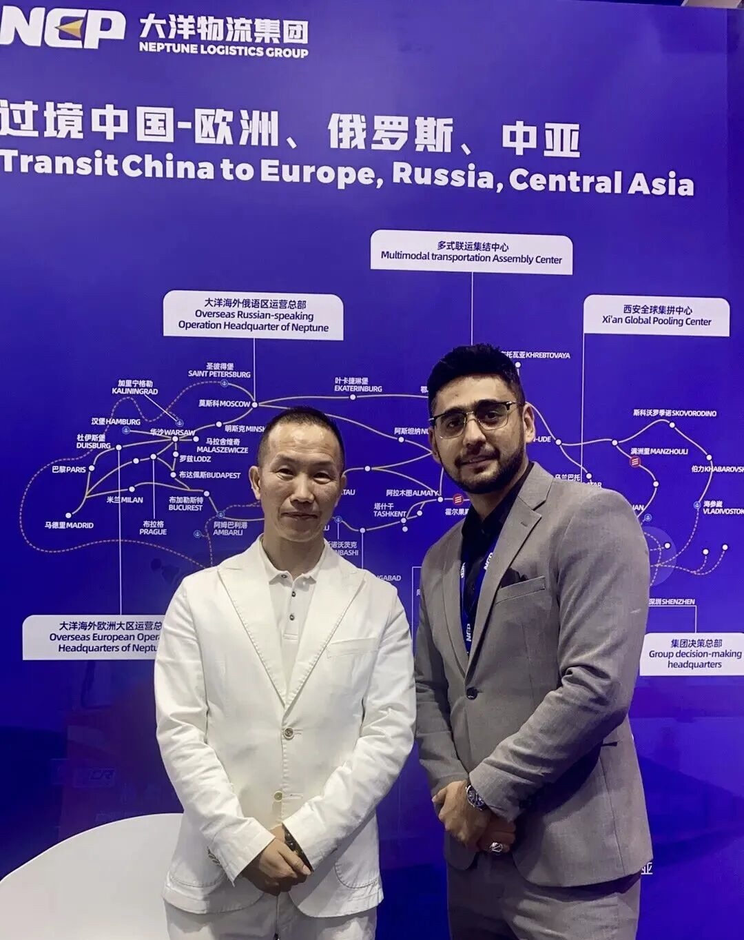 朱迪会长(左)与大洋物流集团参展代表(右)合影