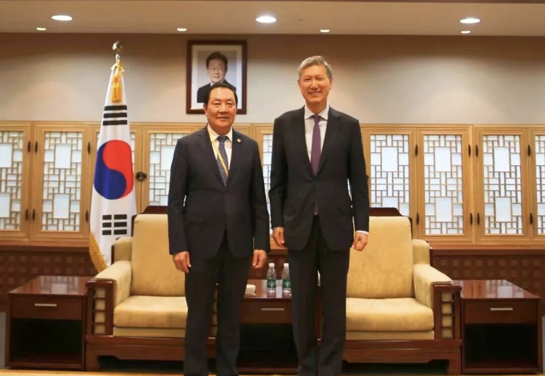 2025年11月10日,中国亚洲经济发展协会会长权顺基一行应邀到访大韩民国驻中国大使馆,与新任韩国驻华大使卢载宪友好交流。